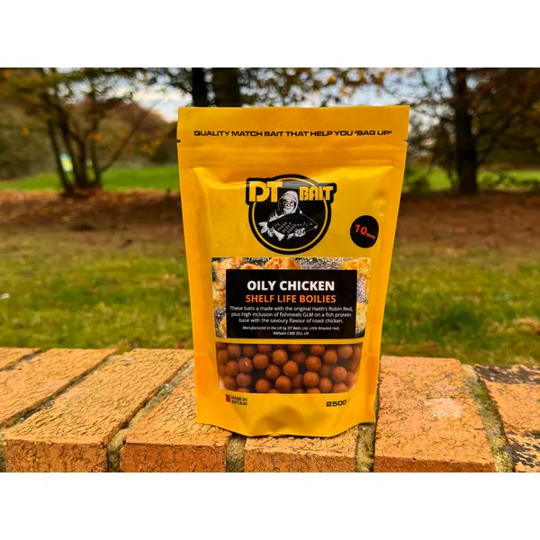 Choose DT Baits' Oily Chicken Boilies for a bait that combines an unparalleled roasted chicken flavour with top-tier ingredients, providing the ultimate attraction for carp in any fishing scenario. Experience the difference with a bait that is designed to deliver results, even in the most challenging waters.