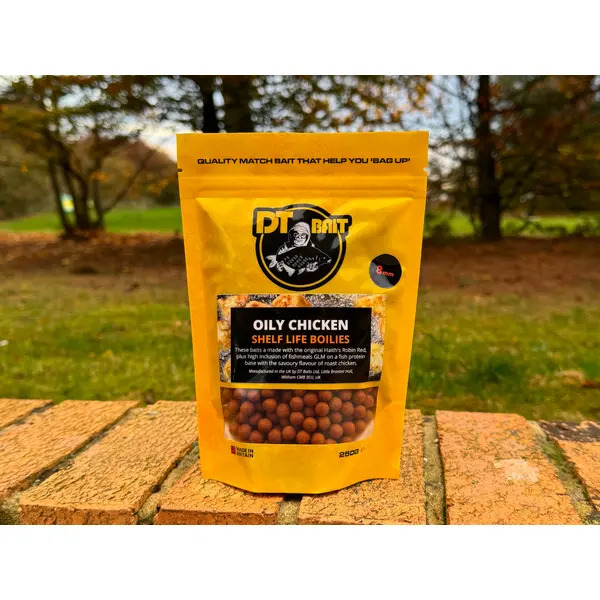 Choose DT Baits' Oily Chicken Boilies for a bait that combines an unparalleled roasted chicken flavour with top-tier ingredients, providing the ultimate attraction for carp in any fishing scenario. Experience the difference with a bait that is designed to deliver results, even in the most challenging waters.