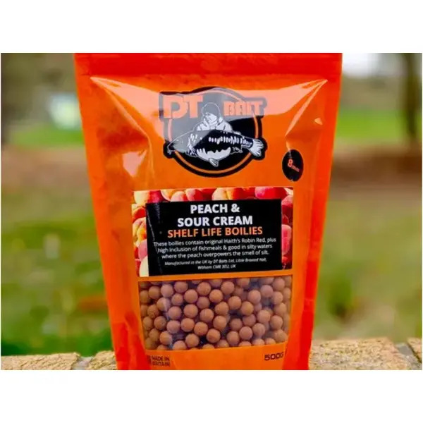 DT Baits' Peach and Sour Cream Boilies excel in a variety of fishing environments, particularly in silty waters where other baits may struggle. Their potent aroma and premium ingredients make them a standout choice for anglers looking to maximise their catch rates.
